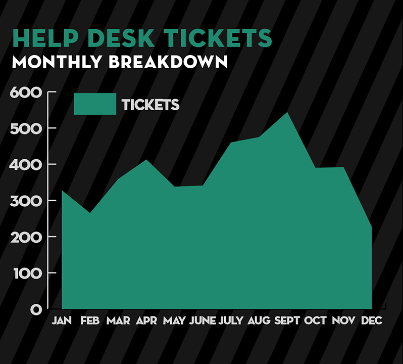 Dec. 18, 2014—2014 has been a big year for Web Communications! We’ve moved into new offices, launched projects, trained users, answered help desk tickets, tweeted, facebooked, instagrammed and youtube’d—and had a pretty good time through it all. (Thanks to Anna Whinnery for her graphic skillz putting together all our random numbers into a spiffy infographic!)