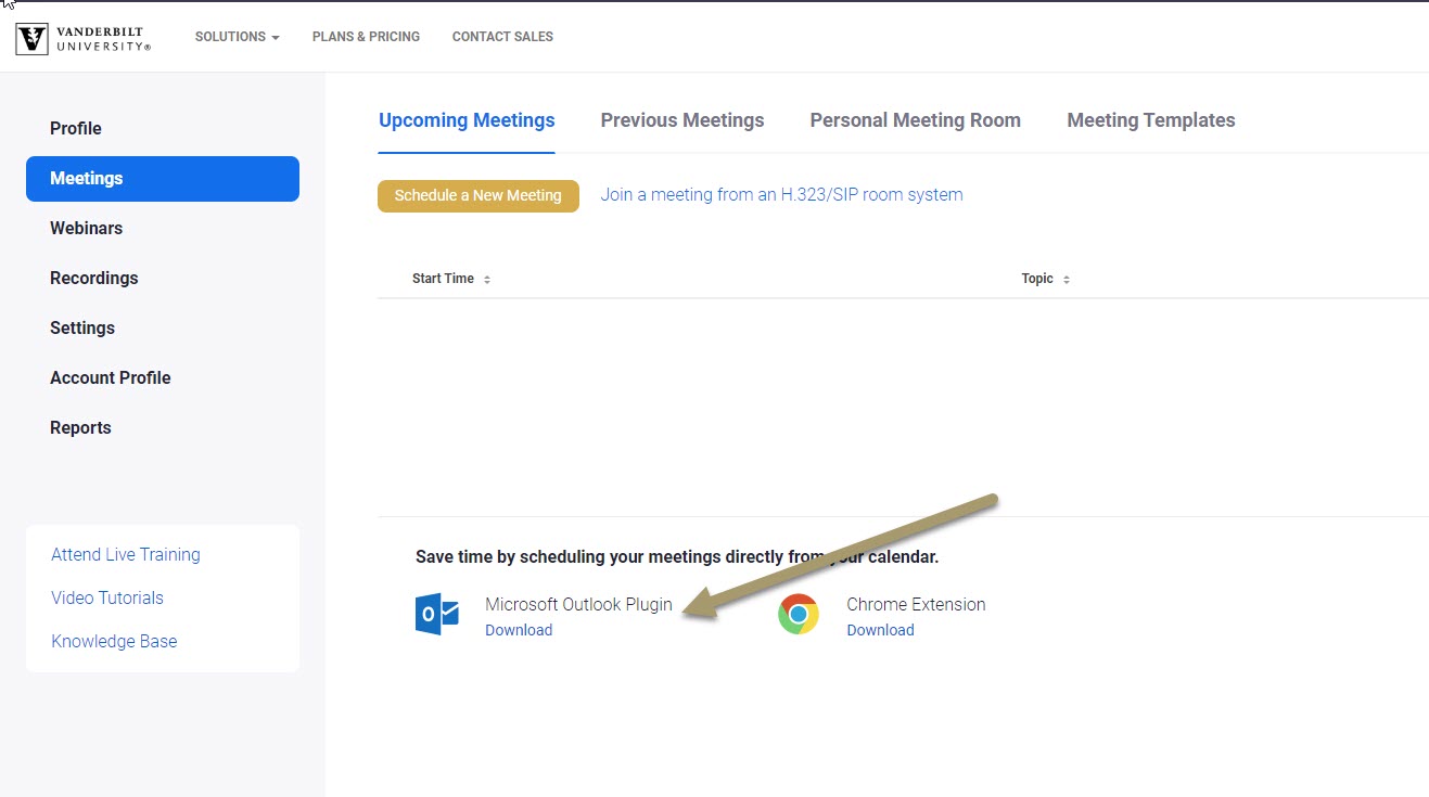 After signing into your Vanderbilt Zoom account with your VUNetID and password you can download the Outlook Add-in that will allow you to schedule Zoom meetings directly from Outlook.
