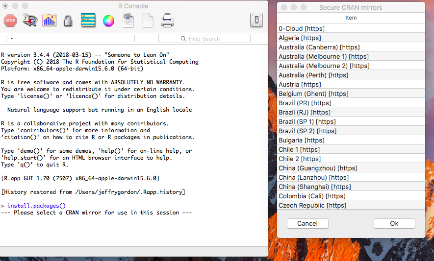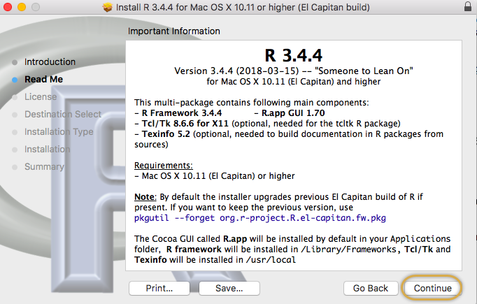 Installing R and R-Commander on the MacOS 10.11 and newer
