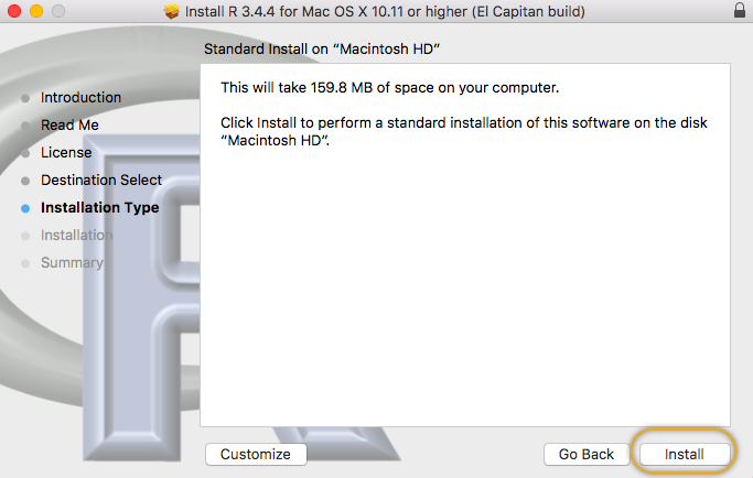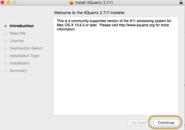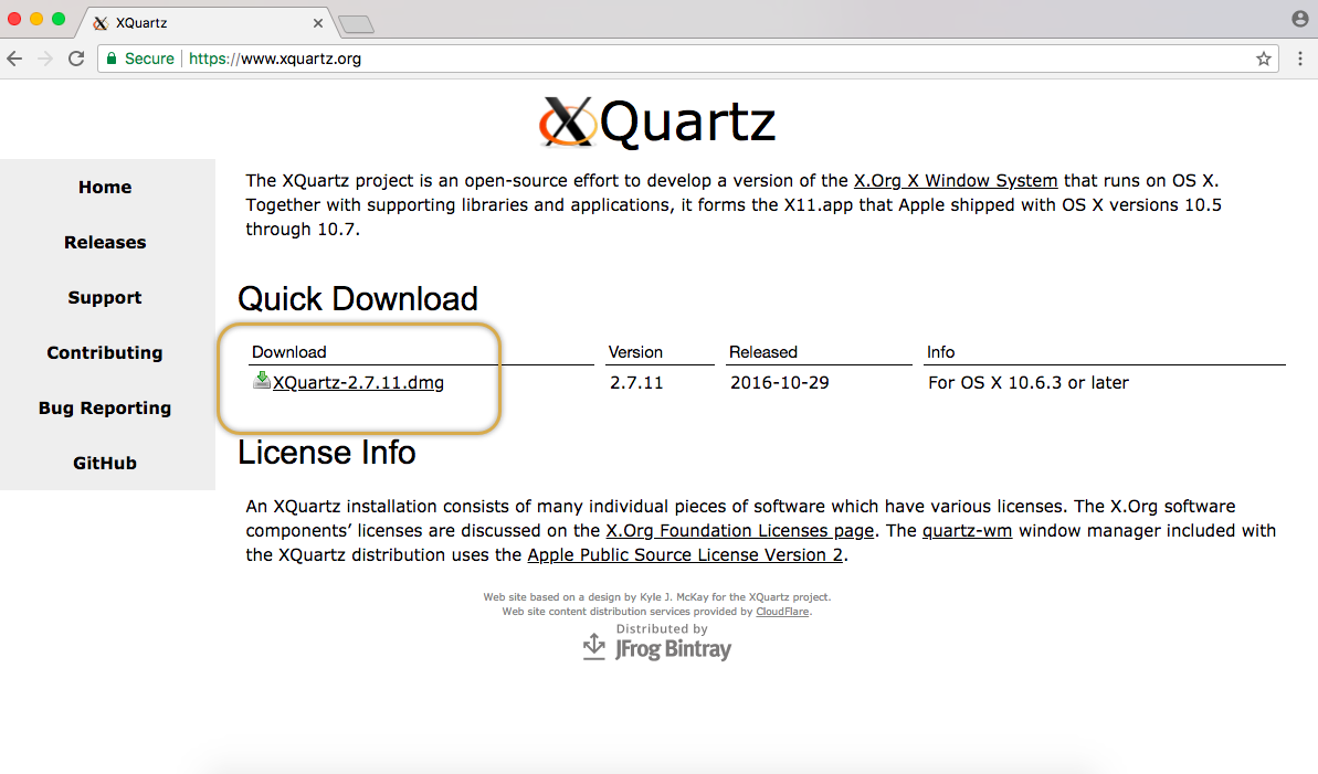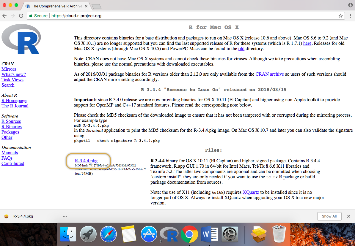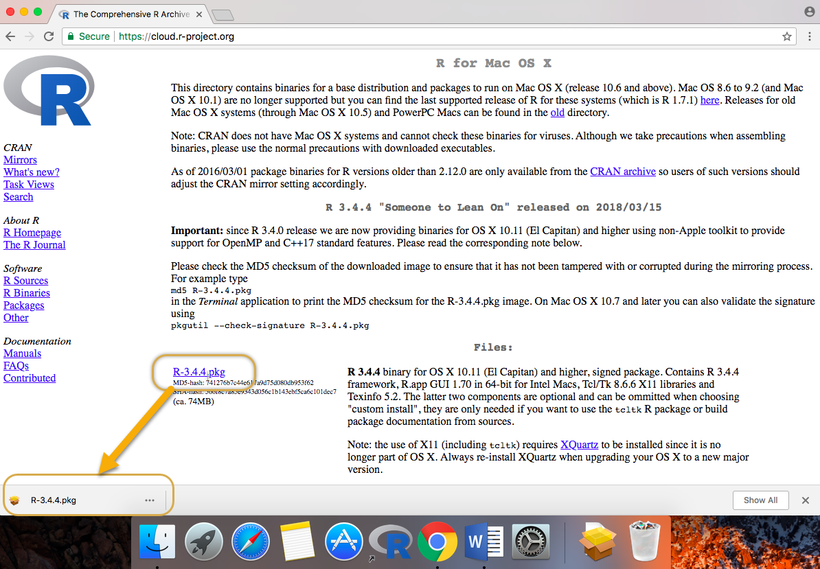 After successfully installing XQuartz, you will now go here and install R: (copy the URL below and paste into Chrome)