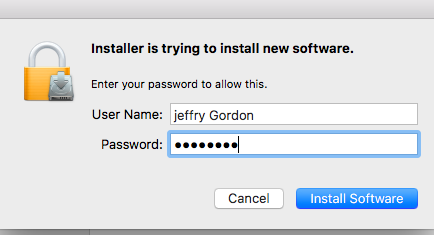 Like all mac apps you will have to put in your MAC username and password. That is probably DIFFERENT than your VUNetID and ePassword.