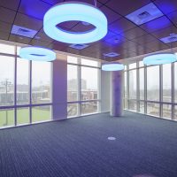 The Engineering and Science Building opened in 2016 to serve as a trans-institutional hub for innovation and research. Four floors were completed at the time, but the building was designed to grow upward and accommodate more faculty. Construction has concluded on floors five and six, adding 42,000 square feet of usable space. The new floors welcome faculty from the School of Engineering, School of Medicine Basic Sciences and the College of Arts and Science. ESB’s seventh and final floor is under construction and will welcome biochemistry faculty in 2025.