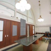 On the east side of campus, faculty from the School of Engineering, Peabody College and the College of Arts and Science have moved into the renovated 17th and Horton building. It has been reimagined as a quantitative hub that brings together synergistic research and teaching programs. The distinctive brick and stone complex, which is listed on the National Register of Historic Places, was built by the Little Sisters of the Poor as a convalescent home in 1916, and it housed Sony Music before Vanderbilt’s purchase of the structure in 2014. The 72,000-square-foot renovation provides collaborative spaces for the Data Science Institute, Peabody College’s LIVE initiative, the School of Engineering’s computer science department and faculty from A&S’s math, physics and astronomy departments.