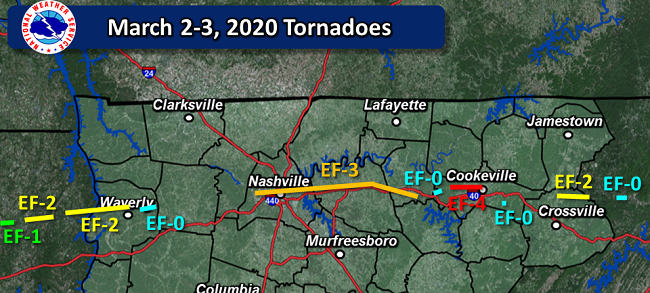 The F3 tornado began just west of Nashville and ripped through the Davidson and Wilson counties.