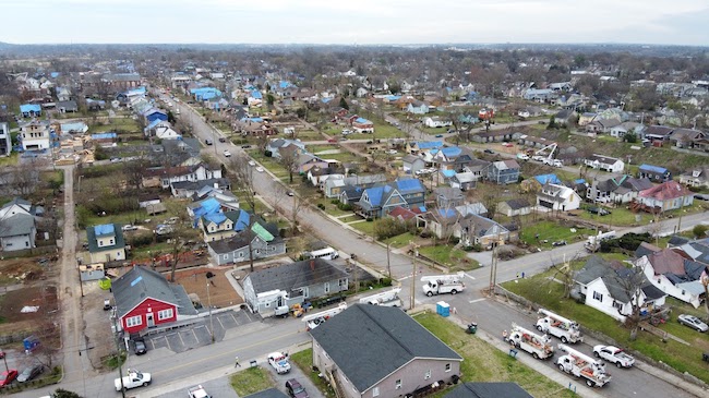 Daniel Perrucci, a Ph.D. candidate in civil engineering, used bird’s eye imagery from drones as well as street-level photography to document pockets of recovery in East Nashville and Mount Juliet, which is about 17 miles of the city. The storms were of the same strength, caused similar damage and the same number of fatalities in each area. East Nashville is part of Davidson County. Mount Juliet is in Wilson County.