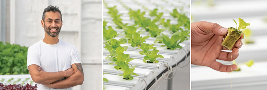 Before sowing the first crop, Hassan studied root growth, planting mediums (such as perlite and rockwool), nutrients, environment and water. He researched the nutrient film technique hydroponics system, which pumps a nutrient and water solution through grow trays. The rest was trial and error—adjusting temperature, humidity, water solution pH and other inputs—and watching how plants responded. “Get some seeds, choose a medium and dive into it,” he advises.
