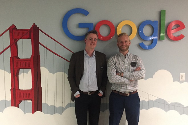 GreenLight Medical was 1 of 13 companies selected for Google Pitch Day in 2017. Austin Dirks (BE’08), right, is CEO; Stephen Saine (BS’04), left, is technical architect.