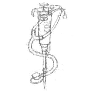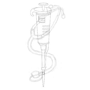 I then transformed the sketch to vector graphics using Adobe Illustrator, constructing first the pipette, followed by the stethoscope.
