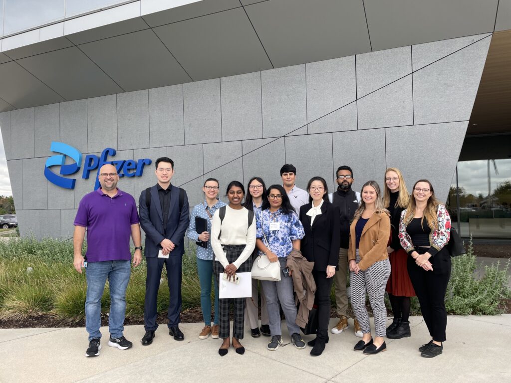 The second day of our trip was focused on visiting the larger pharmaceutical companies Bayer Crop Sciences and Pfizer. At Pfizer, we toured the facility and met with various staff working on analytical, bioprocess, and pharmaceutical R&D. We enjoyed networking with Pfizer employees, who were open and shared valuable career advice. Deepika Nambiar, a protein scientist who completed her postdoctoral research at the Vanderbilt University School of Medicine, emphasized the importance of being proactive about professional development, taking advantage of the numerous classes, soft skills training, and internal job postings that are made available at any place you work for.