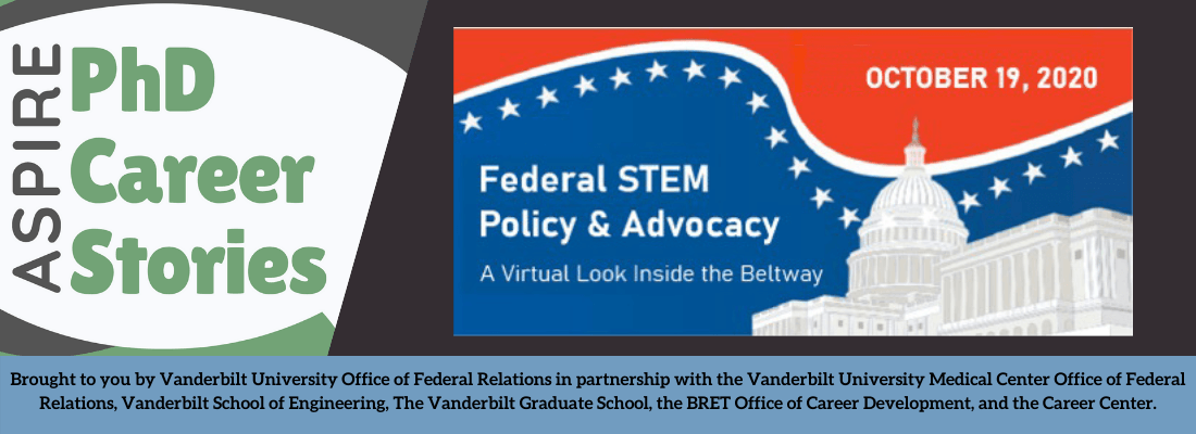 Co-sponsored by the BRET Office of Career Development ASPIRE Program, the Graduate School, the Career Center, the School of Engineering, and the VU and VUMC Offices of Federal Relations