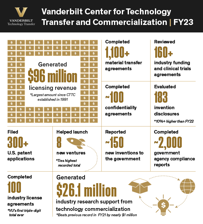 Vanderbilt generates more than $96M in licensing revenue in FY23, most in university history