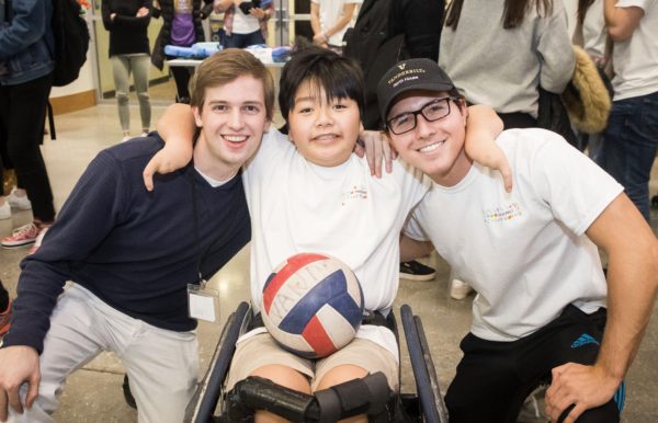 Zion whirled his wheelchair and kicked a round rugby ball to his TOM teammates in the ESB lobby. His chair responded to his liking.