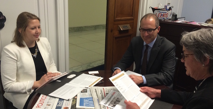 Mona Frederick (left) and Steve Wernke (right) with a staff member from Rep. Steve Cohen’s office (Gabriella Ra’anan / Vanderbilt University)