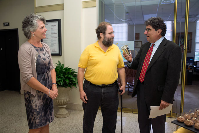 Friends and colleagues at Vanderbilt’s Peabody College of education and human development gathered in the lobby of the Peabody Administration Building for the presentation. The Chancellor’s Cup has been given annually since 1963 for “the greatest contribution outside the classroom to undergraduate student-faculty relationships in the recent past.”