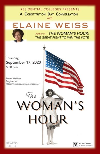Vanderbilt University will honor Constitution Day with a focus on the centennial of the ratification of the 19th Amendment to the U.S. Constitution featuring a conversation with Elaine Weiss, author of The Woman’s Hour: The Great Fight to Win the Vote.