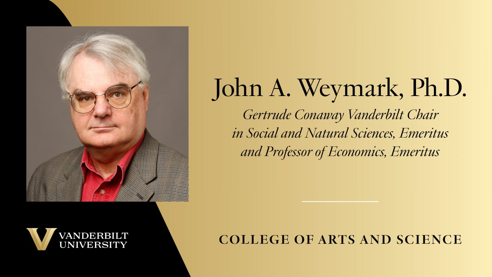 - John A. Weymark, Gertrude Conaway Vanderbilt Chair in Social and Natural Sciences, Emeritus, and professor of economics, emeritus