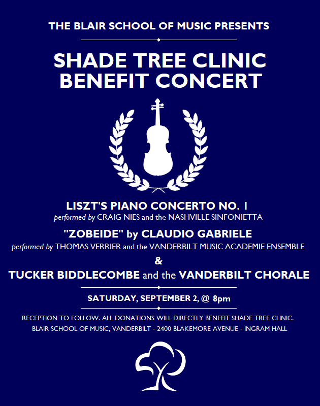 This work not only strengthens the neighborhoods of East Nashville, but also teaches student providers how to care for underserved populations. Shade Tree appreciates its longstanding relationships with Neighborhood Health, which provides the clinic’s facility, and Vanderbilt University Medical Center, which helps care for patients needing advanced treatment. The clinic also appreciated the many years of support from conductor Dean Whiteside and the Blair School of Music for hosting this annual event.