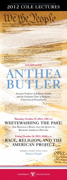 Anthea Butler, a noted scholar on religion and politics who is a regular contributor to national media programs, will deliver the 2012 Cole Lectures at Vanderbilt University Divinity School’s Benton Chapel.