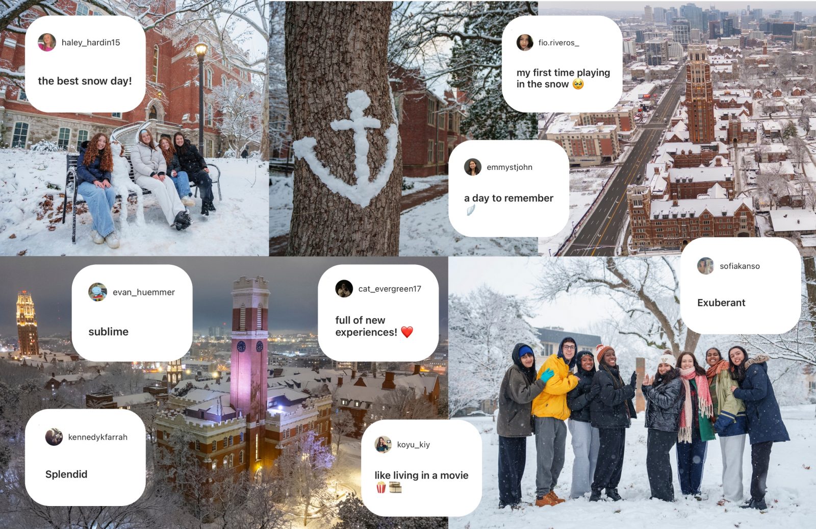 In a city where snowflakes make rare appearances, Nashville transformed into a stunning winter wonderland last week as a blanket of snow covered much of the area—including the campus of Vanderbilt University. Check out some of our favorite beautiful photos and videos that captured the magic of the moment!