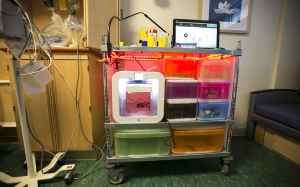 Also known as Project M@CH, the learning cart is equipped with LED lights, wires, microcontrollers and a 3-D printer to engage young patients who enjoy engineering activities.
