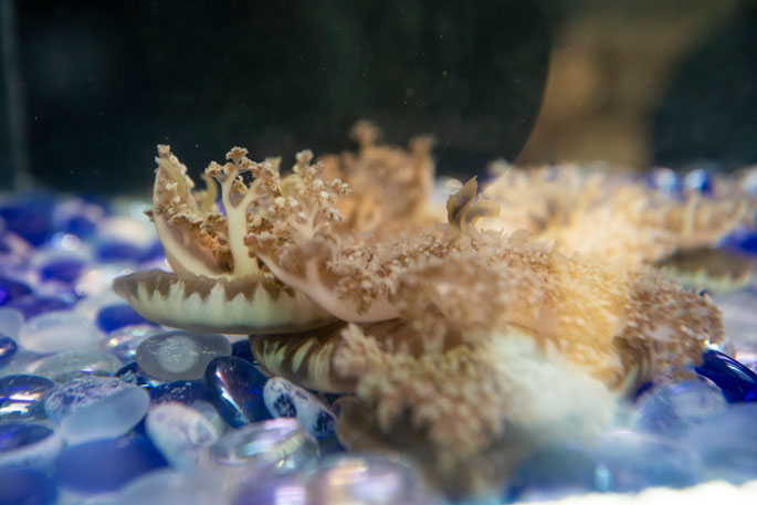 “The upside-down jellyfish are interesting because the zooxanthellae (algae) in their tissues make them similar to some types of coral,” said Amanda Dixon, SSMV admissions coordinator. “They grow quickly and multiply under the right conditions, so it will be exciting to watch them adapt to this new habitat.”