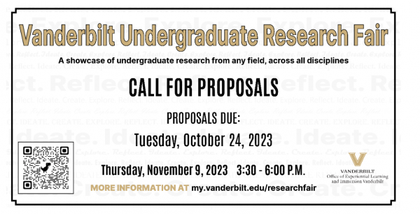 The Office of Experiential Learning and Immersion Vanderbilt invites undergraduate students to submit proposals for the annual fall Vanderbilt Undergraduate Research Fair, which is scheduled for Thursday, Nov. 9, in the Student Life Center Commodore Ballroom from 3:30 p.m. to 6 p.m.