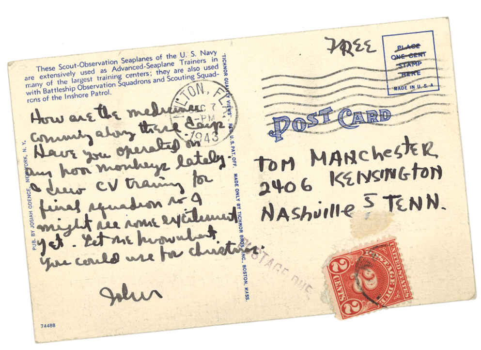It was the start of a nearly two-year journey that ended after Manchester was shot down in a Helldiver bombing raid over Manila Bay in November 1944, less than a week after learning his maternal grandfather had died. Through it all, Manchester wrote 197 letters back home, which his sister, Emily Manchester Townes, BA’50, compiled into a family history called School Boy to Helldiver. She recently shared the collection with Vanderbilt Magazine.
