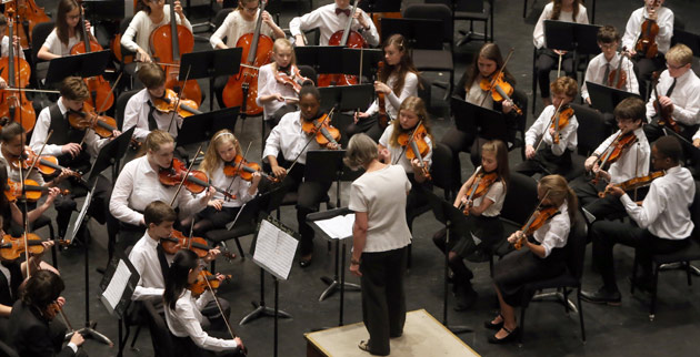 Younger students flourish in the Youth Strings Orchestra and Reading Orchestra, which are directed by Celeste Tuten. Audition information for these orchestras is available here.