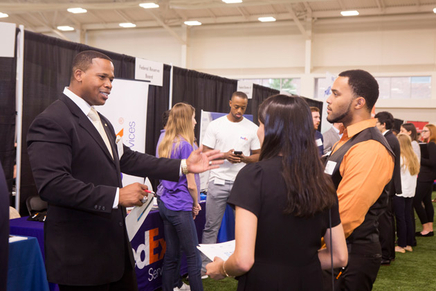 Prior to the Career Fair, Career Center staff teamed with a group of 10 employer guests to conduct a three-day Career Kickoff seminar, in which more than 500 students participated in résumé reviews and had professional photo head shots made.