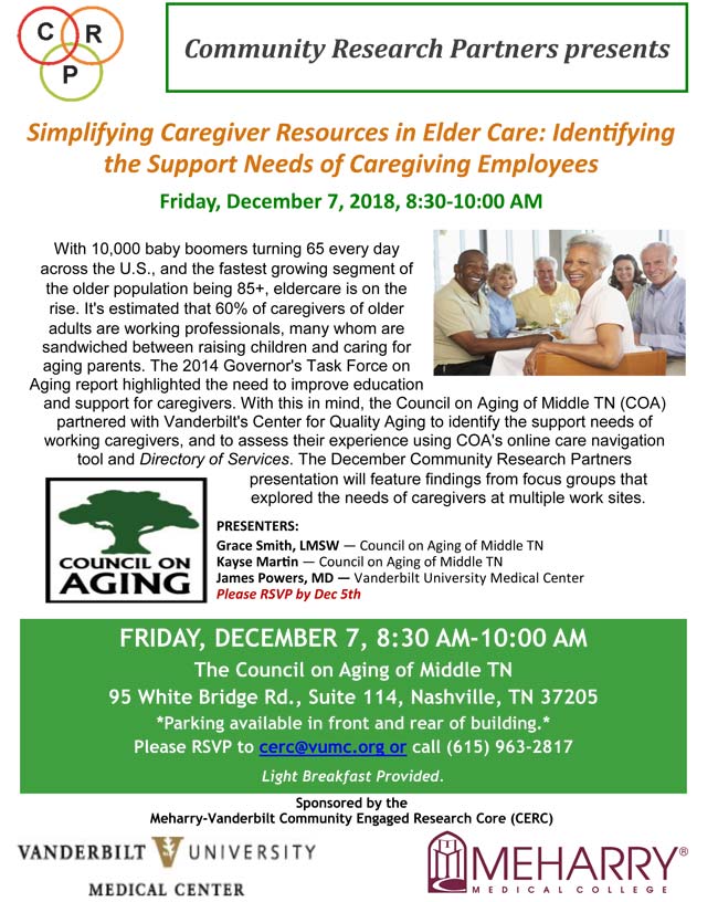 Community Research Partners: ‘Identifying the Support Needs of Caregiving Employees’ Dec. 7