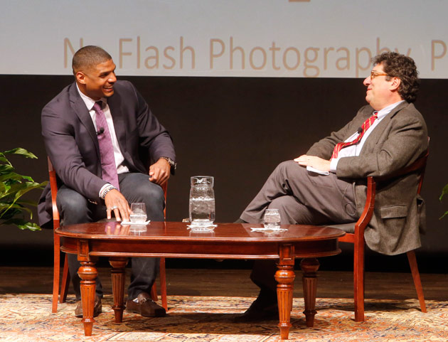Like many in the audience, Chancellor Nicholas S. Zeppos said he’d seen Sam on television as well as on the Vanderbilt campus when he was a Missouri player. “We all have admiration for the many things he has done,” Zeppos said. “But I think what we have to realize is he’s always been on a journey, and he didn’t start out as the star.