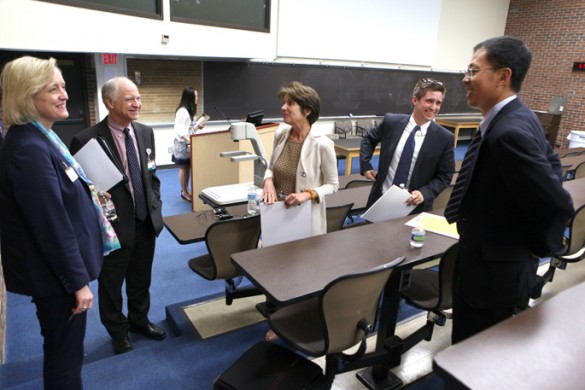 Lawrence Marnett, Ph.D., second from right, dean of Basic Sciences in the School of Medicine, visited with three Vanderbilt University scientists prior to their presentations during last week’s Flexner Discovery Lecture on “cutting-edge” research.