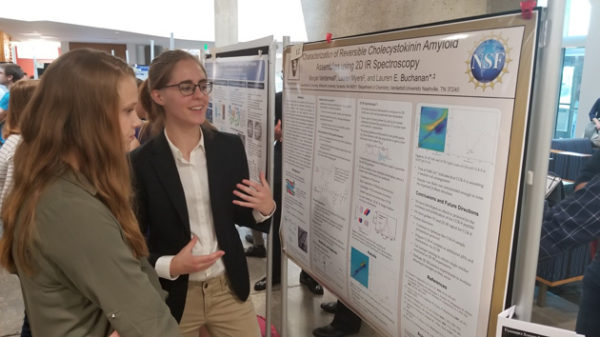Students also noted how they developed new interests through their summer research experience with VSSA. “Before coming to Vanderbilt for the summer, I considered myself a pure biochemist,” said Whitworth University student Morgan Vanderwall, who worked with Lauren Buchanan, assistant professor of chemistry, as part of the Chemistry Biology Program. “However, I have come to realize that the tools of physical chemistry can be used to tackle medically relevant problems. As a result, I see myself developing a research project that combines the techniques of biochemistry and physical chemistry.”
