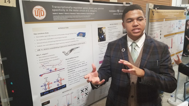 Isaiah Swann from the University of Texas in Dallas participated in the Medical Scientist Training Program. Swann conducted research with David Miller, professor of cell and developmental biology, on how gap junctions relate to movement and disease. Swann said that VSSA was one of the most rewarding experiences he has ever had. “This experience has allowed me to advance my scientific understanding of some of the neurological issues I have watched my family members deal with as well as conduct research that I hope will provide some meaningful results, which can be used to better understand and treat their diseases.”
