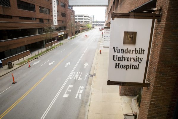 The characteristic bustle of the Medical Center campus has diminished as everyone continues to practice social distancing. The effect of the postponement of elective surgery, combined with thousands of VUMC employees working from home, meant almost no traffic along Medical Center Drive. Photo by Susan Urmy