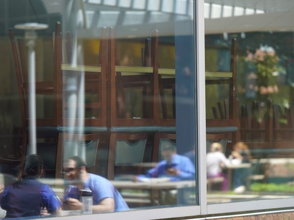 Social distancing to slow the spread of the virus meant that there were fewer visitors around the Medical Center as well. Photo by Erin O. Smith