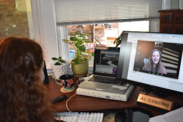 An amazingly quick sea change occurred in the way outpatient care was given by Vanderbilt clinicians, and thousands of appointments were shifted from face-to-face to virtual appointments. Jill Clendening of VUMC News and Communications, visits with her provider, Katy Hansen, a nurse practitioner at the Vanderbilt Osher Center. Photo by Sydney Clendening. A story about Jill Clendening’s experience with telemedicine is here.