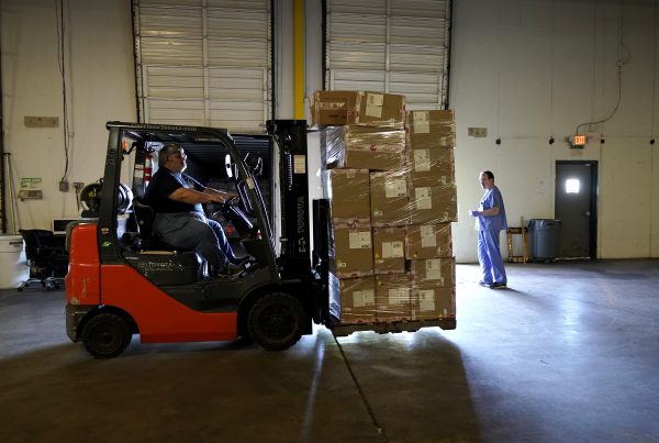 Food donations weren’t the only way Medical Center employees were being recognized and aided by others. Country Artist Luke Combs donated 5,000 pairs of Crocs shoes for employees. Luther David Stinson lll, Lead Warehouse Material Handler unloads a pallet of Crocs bound for the feet of VUMC front-line workers. Photo by Donn Jones
