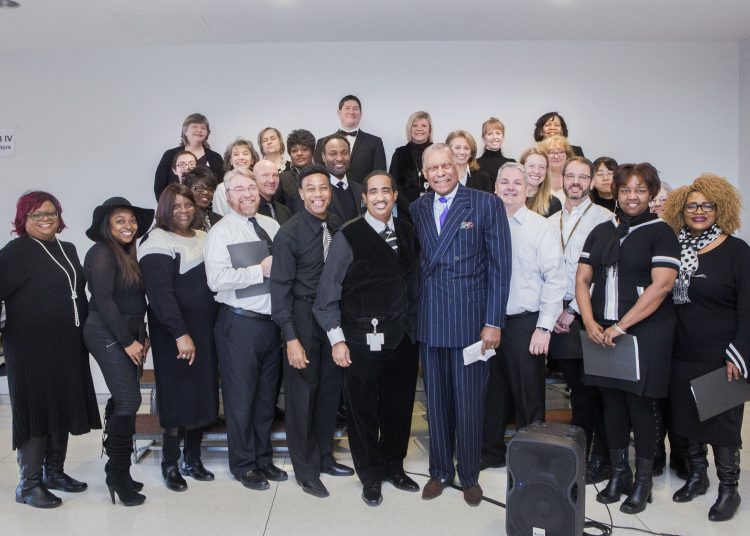 André Churchwell, MD, chief diversity officer for VUMC, stepped from behind the podium where he had been speaking, took his place in front of the United Voices of Vanderbilt choir and sang lead in a moving rendition of the spiritual “Go Down, Moses,” as part of the Martin Luther King Jr. Morning Tribute, held Monday, Jan 15.