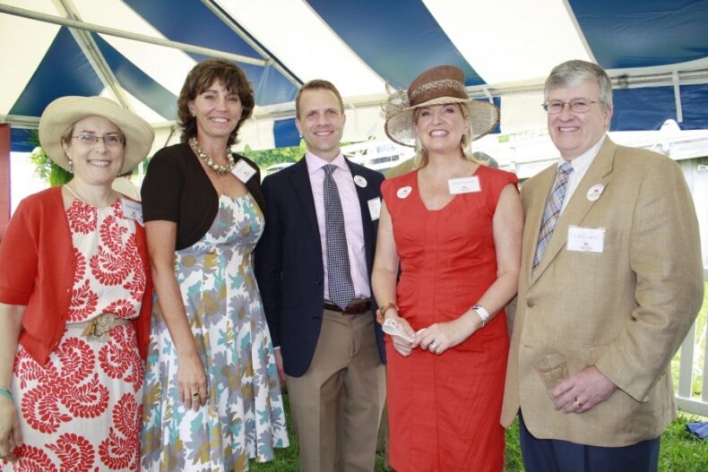 The Monroe Carell Jr. Children's Hospital at Vanderbilt tent at the 71st annual running of the Iroquois Steeplechase was a popular place. Among those on hand were, from left, Vanderbilt’s Meg Rush, M.D., Williamson Medical Center’s Lori Orme, R.N., and Vanderbilt’s Jim Hollender, Susan Hernandez, MBA, R.N., and Luke Gregory. Steeplechase has raised more than $9 million to benefit the specialty programs, equipment, research and other needs of Children’s Hospital patients and their families.
