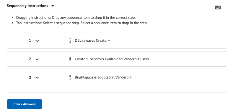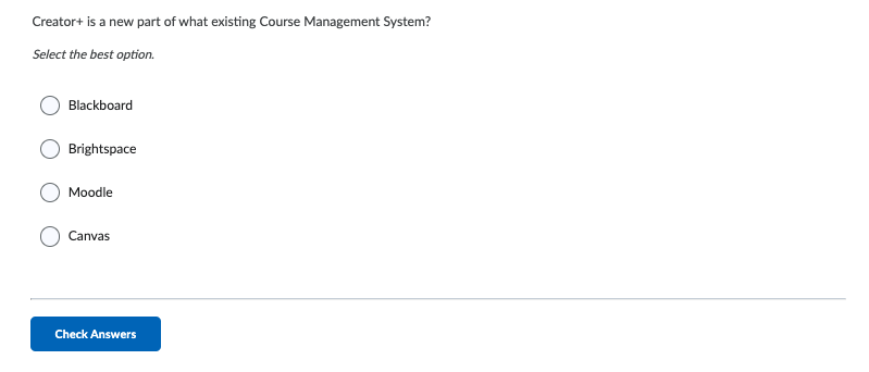In addition to the Accordion Element, there are several forms of Elements and Practices you can incorporate into your Brightspace environment using Creator+. This section provides an overview of each type of Element and Practice you can use.