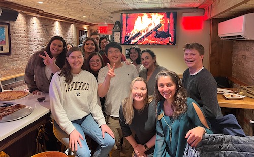 During the last spring break in 2023, six theatre students traveled to New York City with Christin Essin, associate professor of theatre, and Krista Knight, writer-in-residence of cinema and media arts, to see a range of theatre offerings and meet with department alumni. In addition to touring the new Museum of Broadway, they saw Sam Hunter’s A Bright New Boise at the Signature Theatre; Joe Murphy and Joe Robertson’s The Jungle at St. Anne’s Warehouse; and the Broadway musical Some Like it Hot. They also attended an event hosted by the Office of Career Advancement and Engagement with alumni living in the city, including Michele Thompson BA’91, Jessica Owens BA’12, and Isabelle “Izzy” Mann BA’18.
