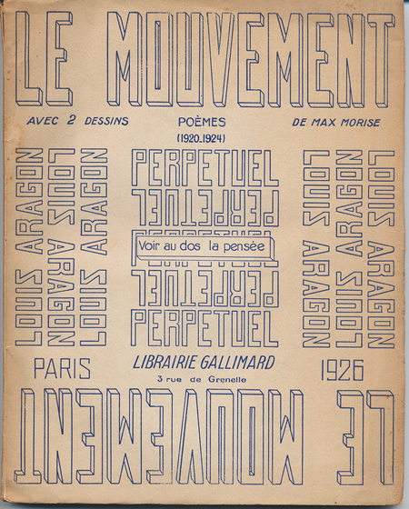 Louis Aragon. Le Mouvement. Poèmes (1920-1924). Dessins de Max Morise. Gallimard, 1926. Aragon (1897-1982) was one of the founders of Surrealism.