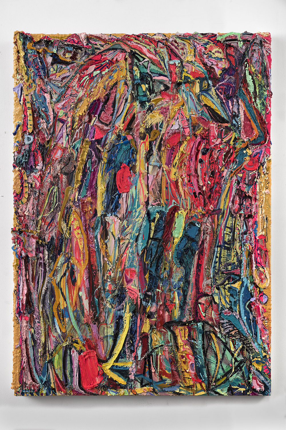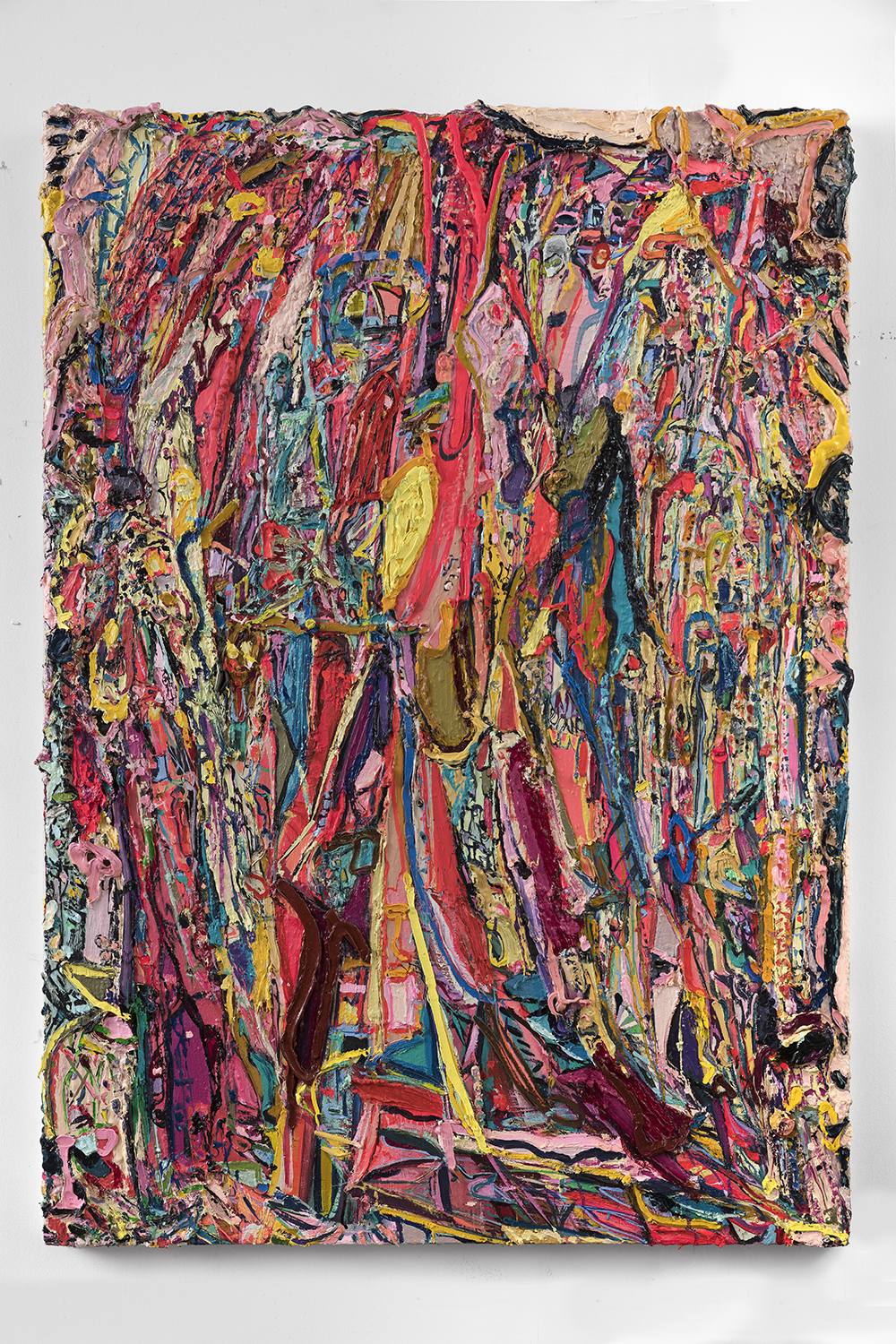 Ali Smith paints vibrant, abstract compositions in oil on canvas whose forms suggest complex organic structures and imaginary landscapes. Her brightly colored and heavily textured networks of lines and forms constitute a personal language of motifs and shapes. Smith received her MFA from California State University, Long Beach (CA), and has since had solo exhibitions at Mindy Solomon Gallery in Miami and Mark Moore Fine Art in Los Angeles. She has been included in numerous group shows, including those at the Laguna Art Museum and Riverside Museum in California. The artist lives and works in Long Beach, California.