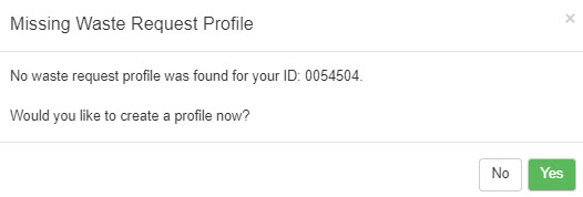 After logging in, the first time you try to place a waste collection request in EHSA, you will be asked to add required fields to set up your Waste Request Profile.
