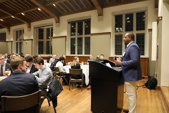 Citing the Beatles, former Vanderbilt Football Coach James Franklin and Confucius, two School of Engineering alumni told student athletes and ROTC members that their undergraduate experiences have put them ahead of their peers – they already know how to manage time and prioritize, how to work as part of a team, and how to lead.