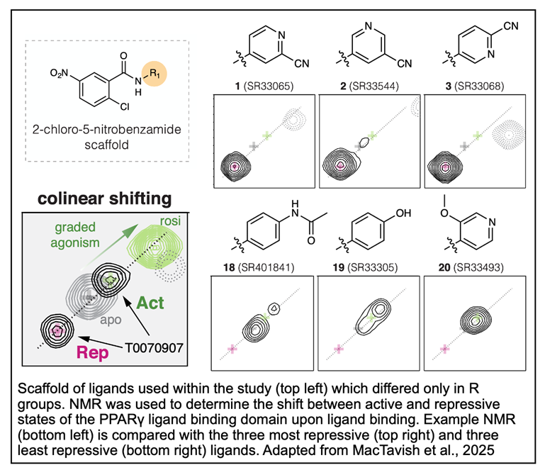 In this study from the Doug Kojetin and John Yang labs, peroxisome proliferator-activated receptor gamma (PPARγ) is used as a model system to understand the functional shifts of nuclear receptor LBDs.