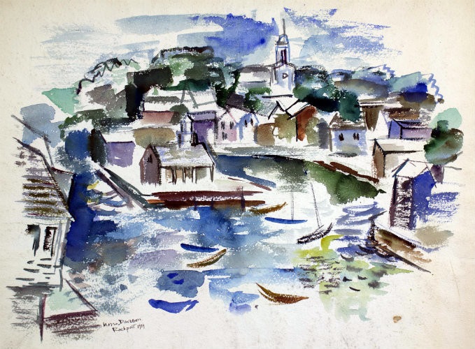 Morris Davidson (American, 1898–1979), Rockport [Bearskin Neck], 1939; watercolor on paper; 18″ x 23-7/8″; Rosenfeld–Davidson Family Collection