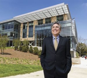 Dean Eric Johnson in front of new Vanderbilt Business building