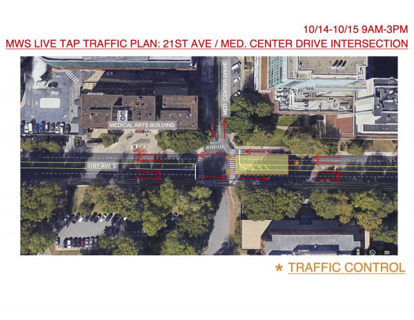 On Monday, Oct. 14, and Tuesday, Oct. 15, traffic patterns along 21st Avenue near Medical Center Drive will be adjusted to accommodate the completion of utility work for a Vanderbilt University Medical Center project.